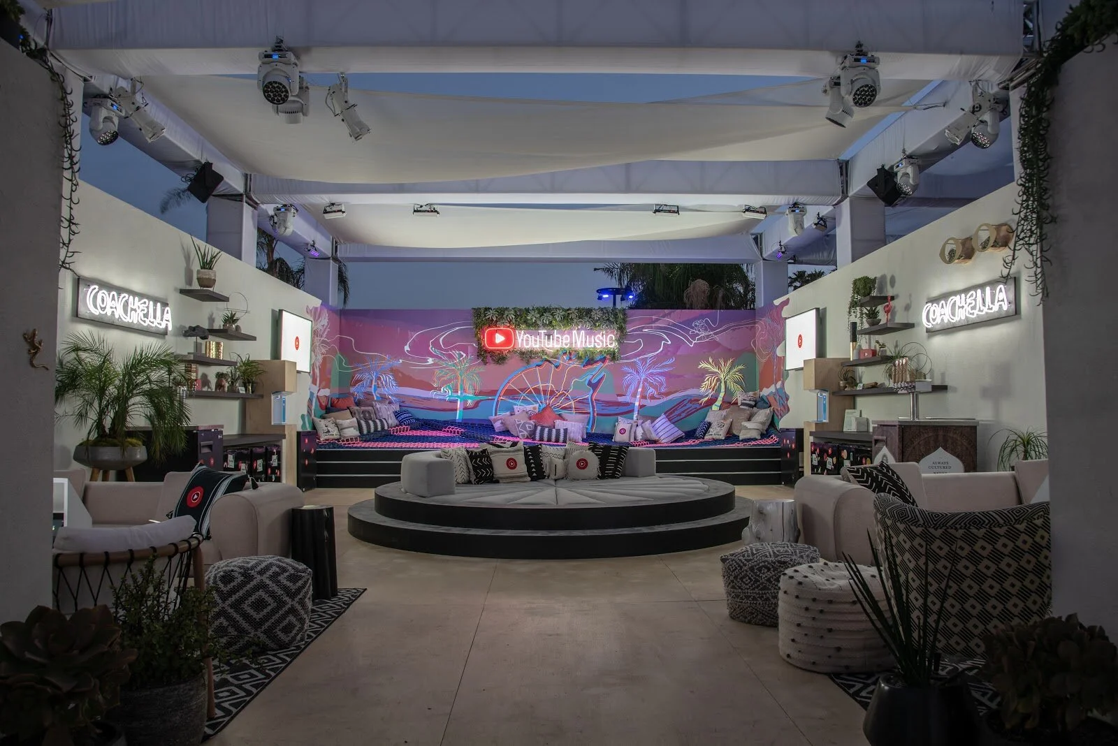 YouTube has a long partnership with Goldenvoice & Coachella. Each year has to top the last and the on-the-ground lounge that YouTube Music hosts in the artist compound is no exception.